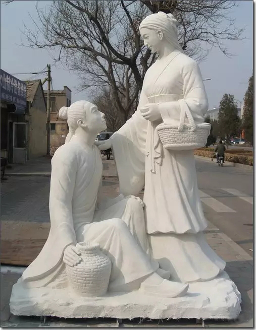 其實(shí)我更喜歡制作成功的玻璃鋼雕塑作品,漂母的優(yōu)雅婉約,嫻靜恬淡,眼神中的憐惜與鼓勵(lì),都在一顰一笑一個(gè)衣褶一個(gè)提動(dòng)態(tài)中體現(xiàn),仿真石材的效果讓韓信的體態(tài)更顯堅(jiān)實(shí),所說(shuō)是落難英雄,看到韓信仰望漂母的感覺(jué),感恩之心悠然而生,或許這就是此雕塑所表現(xiàn)的真實(shí)意義吧。漂母韓信玻璃鋼雕塑最終的安放地點(diǎn)是淮安的一所中學(xué),仰望古人,心懷感恩,后世不忘前世之師,念卻先閑展望未來(lái),懷古論今繼往開(kāi)來(lái)。