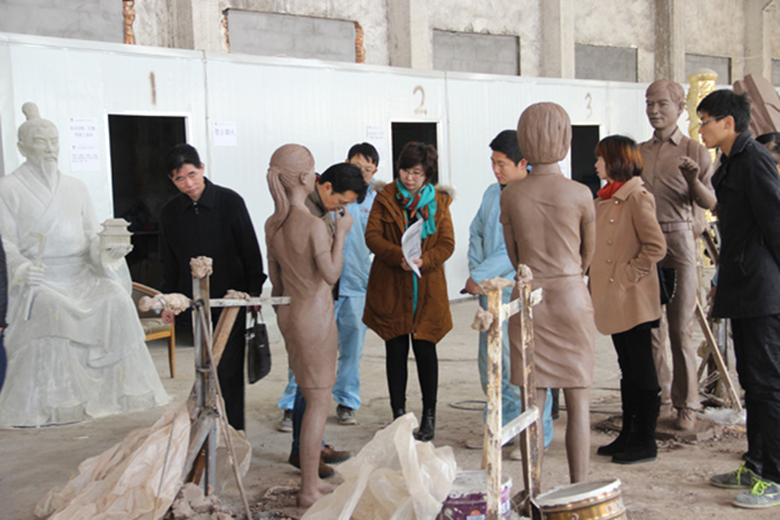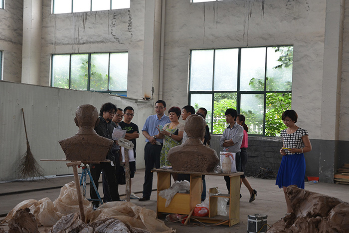 南京萬科房地產領導一行來我確認鑄銅人物雕塑制作進度